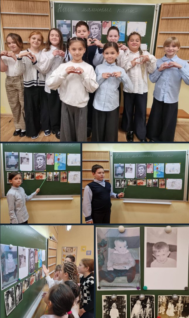 Ребята поздравили пап с праздником и с гордостью рассказали о них своим одноклассникам. Ох, и трудно было догадаться, где чей папа, ведь с фотографий на ребят смотрели весёлые карапузы!